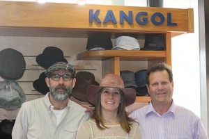 Kangol paid Hats Plus a fun visit on Nov. 9 and gave away plenty of free caps with in-store purchases. Photographed in front of our new Kangol display from the left are Kangol's North American sales director Mark Harris, regional sales rep Kelli Conroy and store manager Tod Canon.
