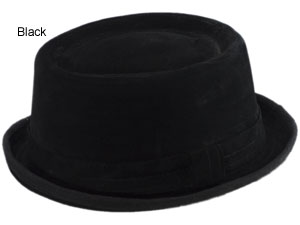Colors:Black, Brown. Brim: 1 1/2-inch preformed. Crown: 4-inch pork pie. Sizes: Med, Lg, XL.