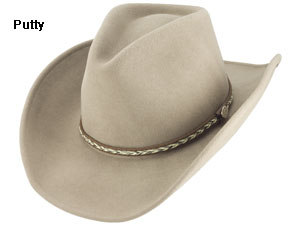 Colors: Putty. Brim: 3 3/4-inch shape-able. Crown: 4 1/2-inch teardrop. Sizes: Sm, Med, XL.