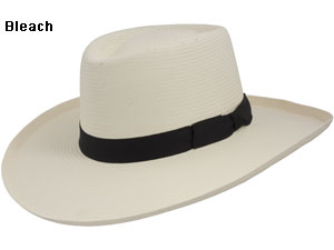 Colors: Bleach. Brim: 4-inch preformed. Crown: 4-inch gambler. Sizes: Sm, Med, Lg, XL, XXL.
