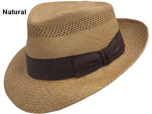 Colors: Natural, Cream. Brim: 2 1/2-inch snap. Crown: 4-inch teardrop. Sizes: 6 7/8 - 7 7/8.