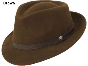 The decision to make a line of inexpensive, high-quality wool fedoras was simply elementary for Stetson. The Professor is a simple, handsome fedora with a distinguished C-crown. The 2-inch brim is a little shorter, following modern trends in men’s hats. The brim snaps up or down according to your tastes. A subtle leather band rings the crown. Inside the hat has no lining and features a comfortable cloth sweatband.
