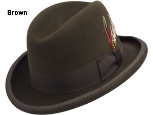 At this bargain price, the Dorfman Pacific Homburg hat--representative of one of the most classy examples of the dress hat there is--is sure not to last. Get one while you still can. The interior is lined with satin and has a leather sweatband.