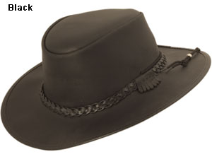 Colors: Black, Brown. Brim: 3 3/4-inch wire rimmed. Crown: 4-inch outback. Sizes: Sm, Med, Med/Lg, Lg, XL, XXL.
