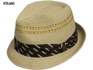 Adding refinements to their straw hat, Goorin Brothers’ “Clayton Morris” fedora offers more than the average Goorin hat. The crown features venting and two colors of straw for extra style and panache. The crown is further accentuated by quadruple pleated hat band. The brim is preformed in a rakish attitude. Its edging is bound. The summer hat is made comfortable to wear by its cloth sweatband.