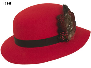 Colors: Camel, Black, Brown, Grey, Red. Brim: 2 1/4-inch. Crown: 3-inch dome. Sizes: Sm., Med., Lg., XL.