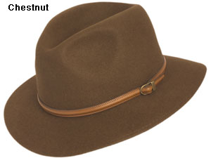 There's quality and craftsmanship in the fur felt Travel Downturn Fedora from Guerra. The generous brim along with the hat’s half-inch thin leather dress band is snappy and sure to turn heads. The felt is water repellent (not water proof). The interior is unlined and has a comfortable sweatband. Italy. Only one left available at this sale price, so move quickly -- does not apply to regular-priced items. *Online Order Only* *Model has a buckle on the leather band