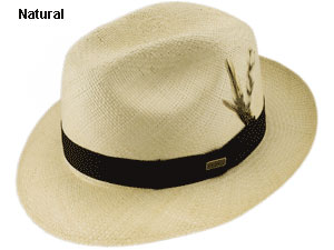 Colors: Natural. Brim: 2 1/4-inch snap Crown: 4-inch center dent. Sizes: 6 7/8 to 7 5/8.
