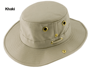 Colors: Khaki, Natural, Olive. Brim: Front and Back: 2 3/4" Sides 2 3/8" Crown: 4-inch flat top. Sizes: 6 7/8 to 8.