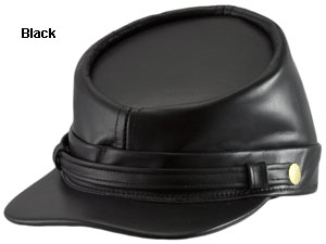 The war between the states popularized the kepi cap in American military uniforms 150 years ago, as foot soldiers of the North and South both wore it. This black-leather model has a little more attitude but still maintains that iconic look. Inside it features a cloth sweatband. USA.