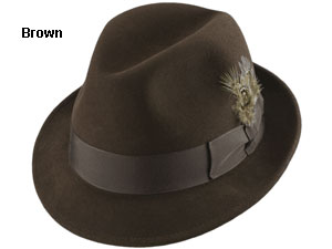 Classic look at a great sale price: the Stefeno Stingy Fedora is made out of 100% Fur Felt. This hat has a removable feather and a solid grosgrain dress band. If a shorter brim is what you're looking for, the Stingy Fedora from Stefeno is yours for the taking. *Online order only