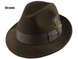 A good-looking hat for an even better (sale!) price: the Boston by Stefeno is a 100% fur felt, center-dent fedora punctuated by generous pinches at the top. The short brim gives the Boston a memorable look and has a grosgrain dress band and optional feather. Priced like this, they're not meant to last. *Online order only